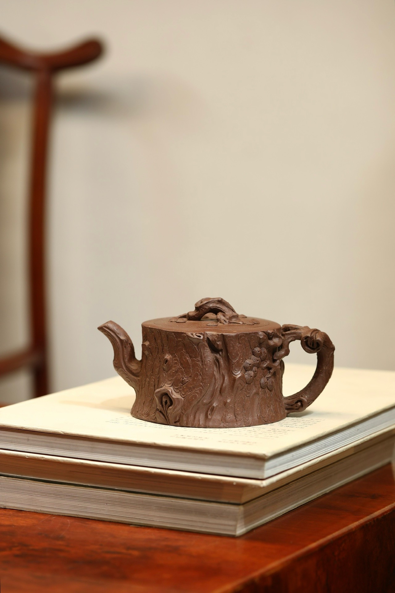 /容量350cc/极品紫泥以松树桩为形 壶身树皮