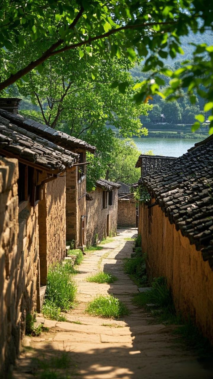 古旧的木屋,瓦檐下 屏∫ ,"福"字添了几分喜庆