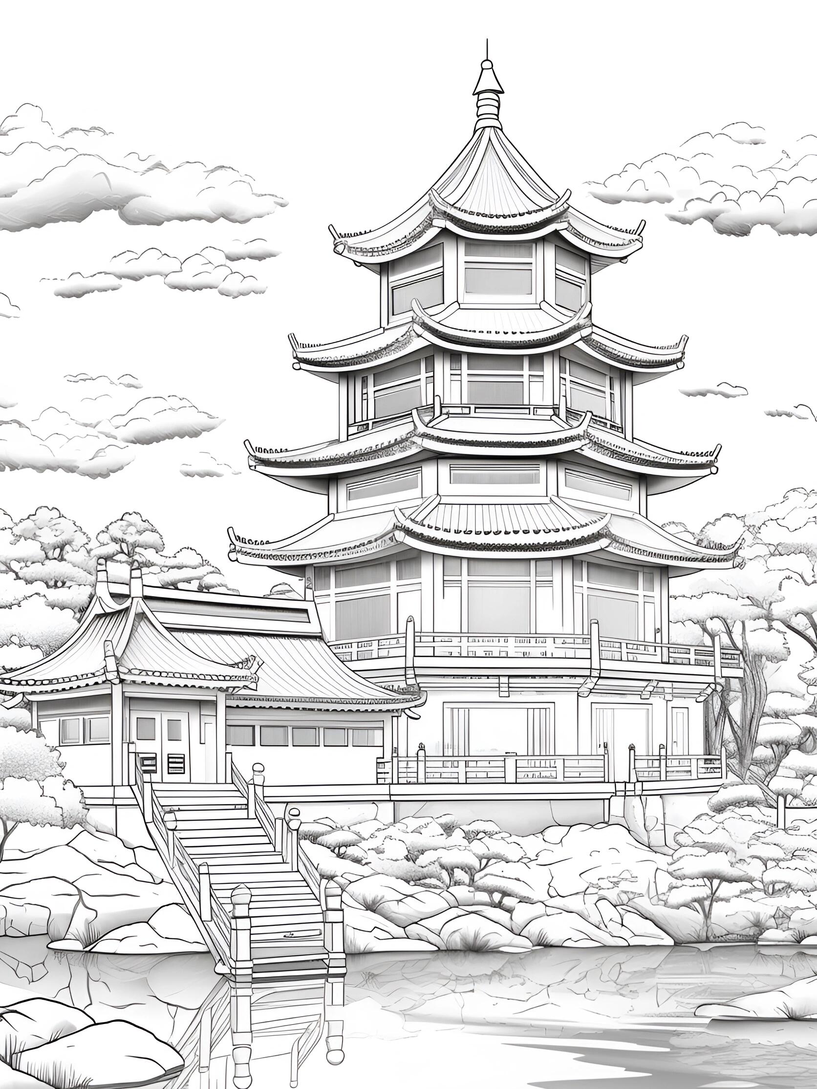 和风建筑线稿