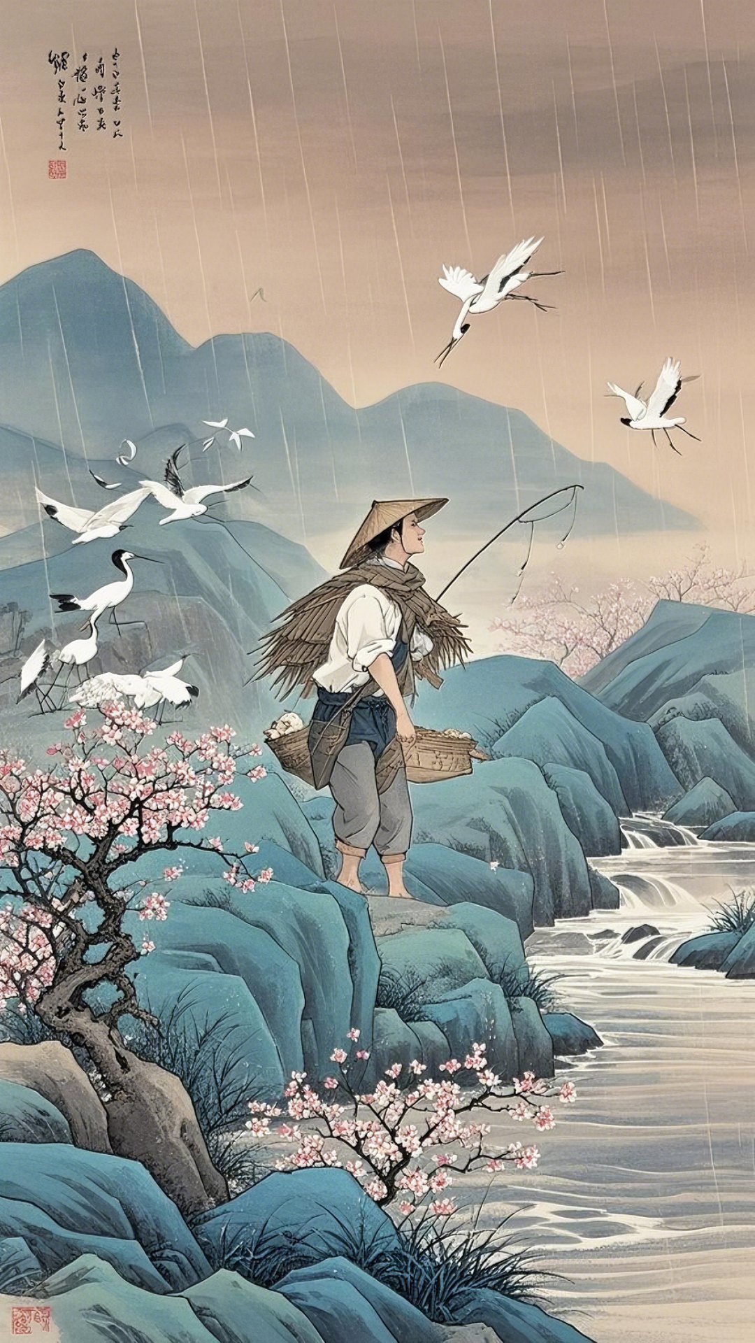 国画山水渔夫