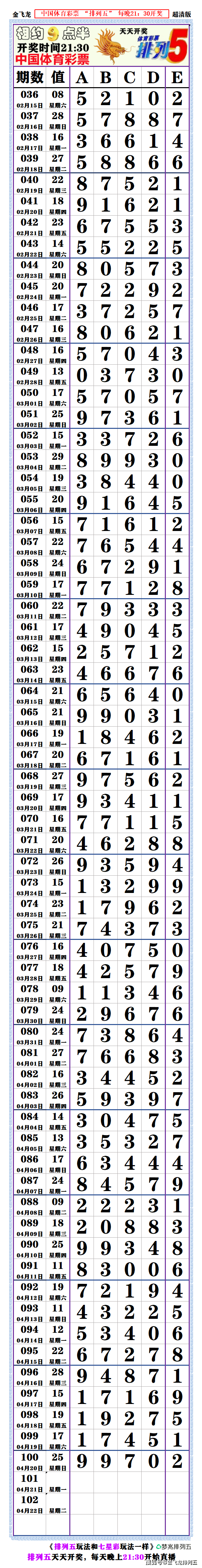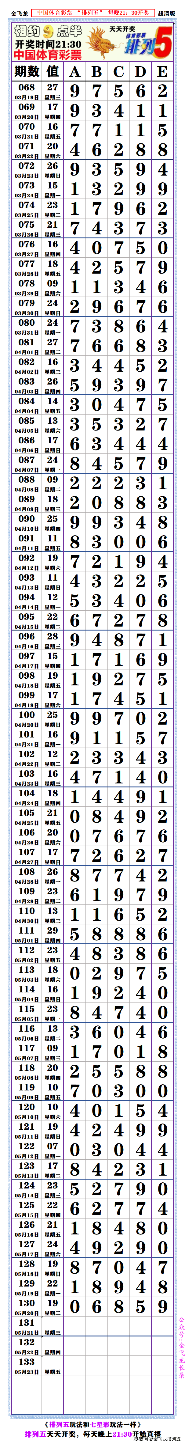 22113期:(排列五高清长条)
