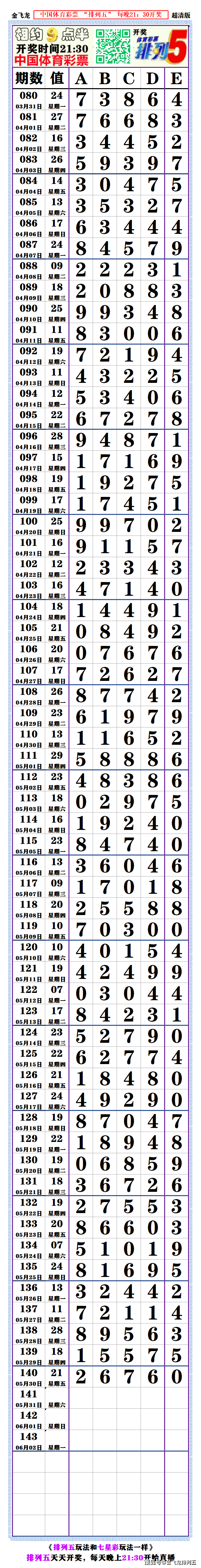 22145期:(排列五高清长条)