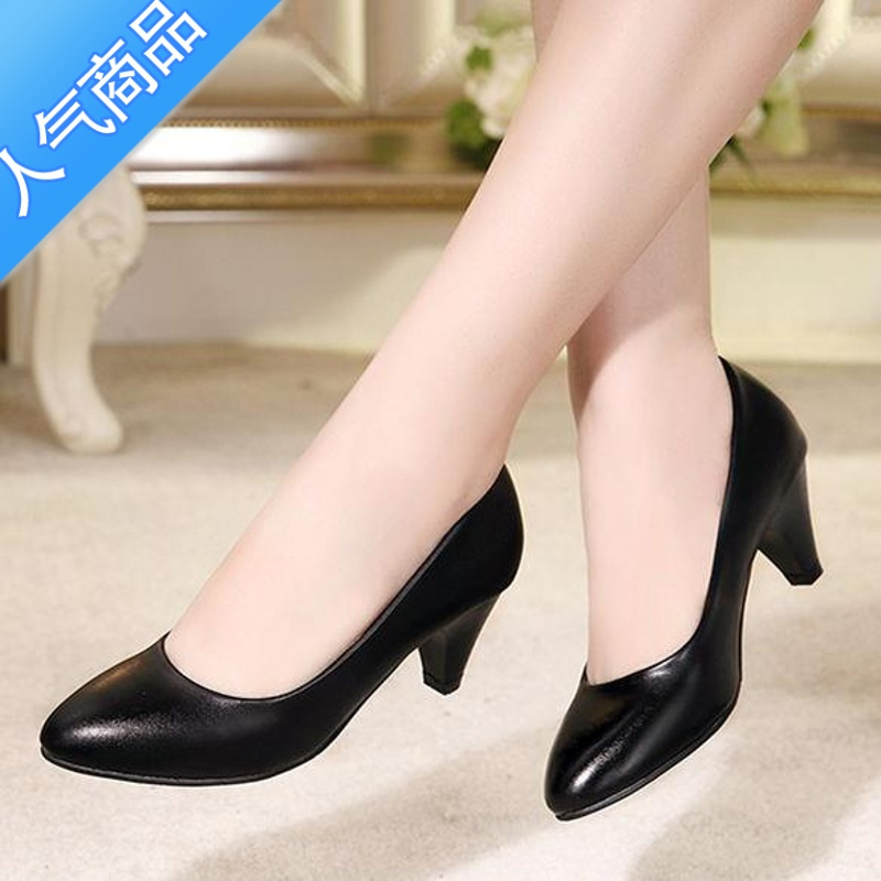 四季单鞋粗跟圆头中跟女鞋方根浅口黑色皮鞋通勤工作鞋低跟女单