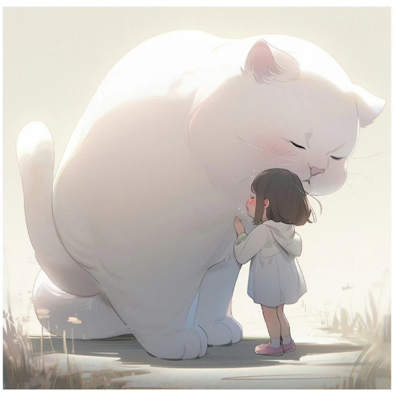 ai治愈系手机壁纸 大猫咪和小女孩