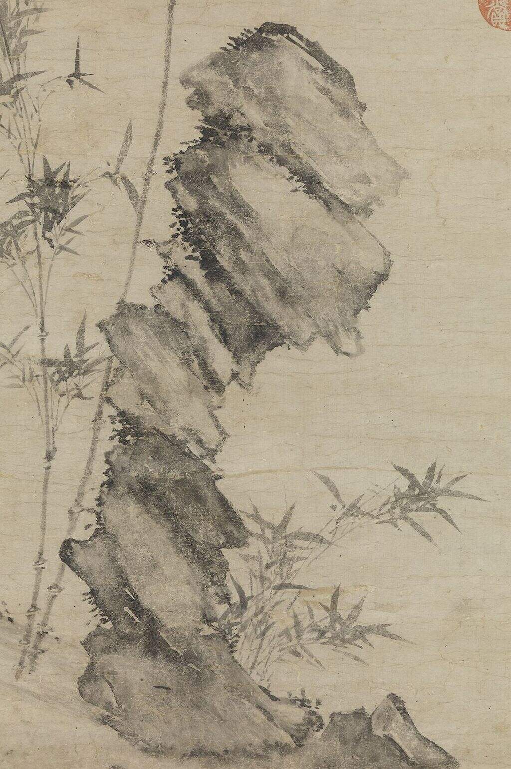 元代 顾安 幽篁秀石图名家国画真迹复制品高清打印艺术微喷绢本