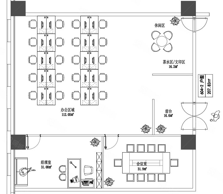 ,接待大厅,独立小型会议室,文印室