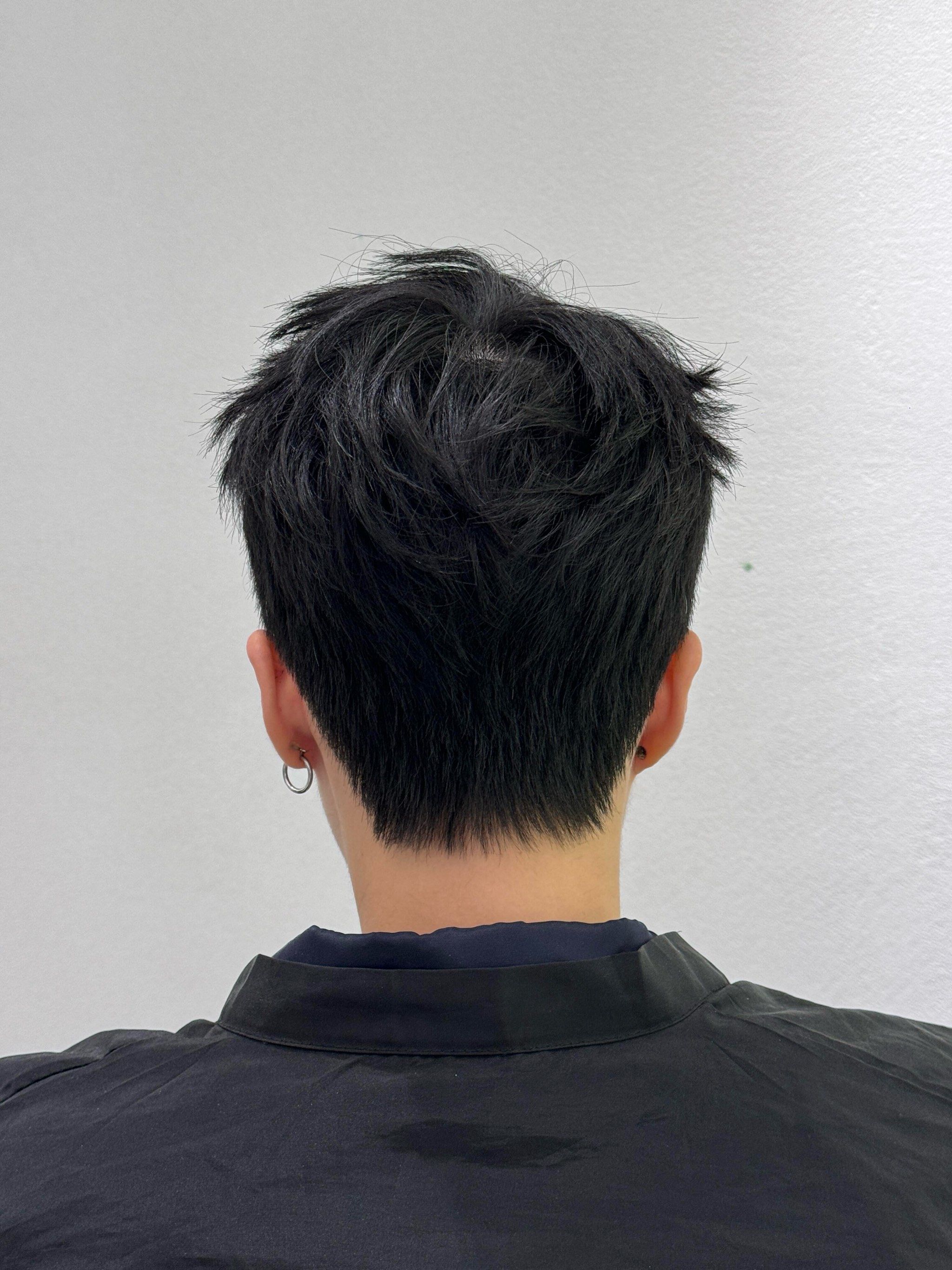男士发型大多数我都会选择把两侧和后区推短,一来可以避免头发乱翘翘