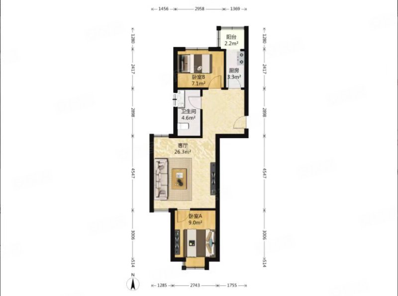 福泽园|陡岭路3室2厅1卫96.7平方