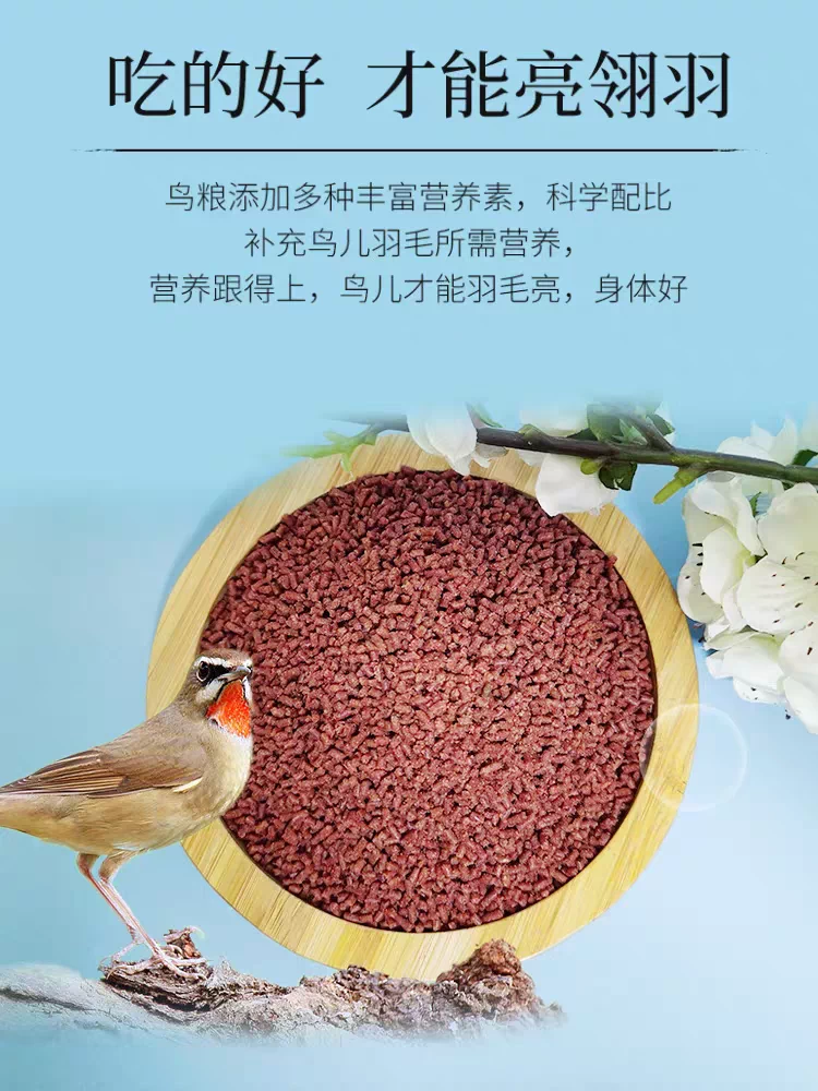 红靛颏鸟食第一名蓝靛颏鸟食精品靛颏营养颗粒靛颏饲料红蓝脖鸟食