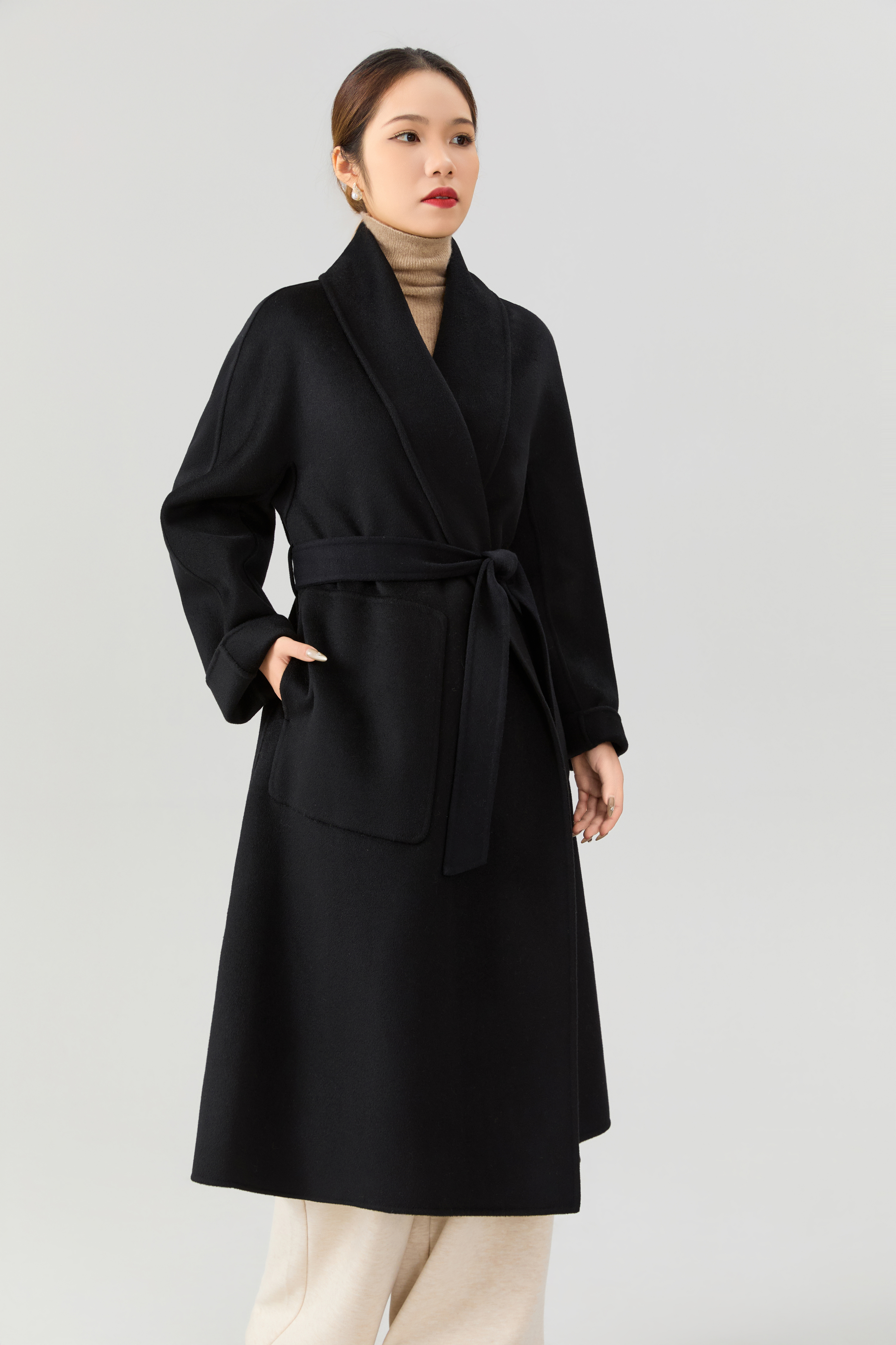 女神范爆棚!解锁黑色双面羊绒大衣