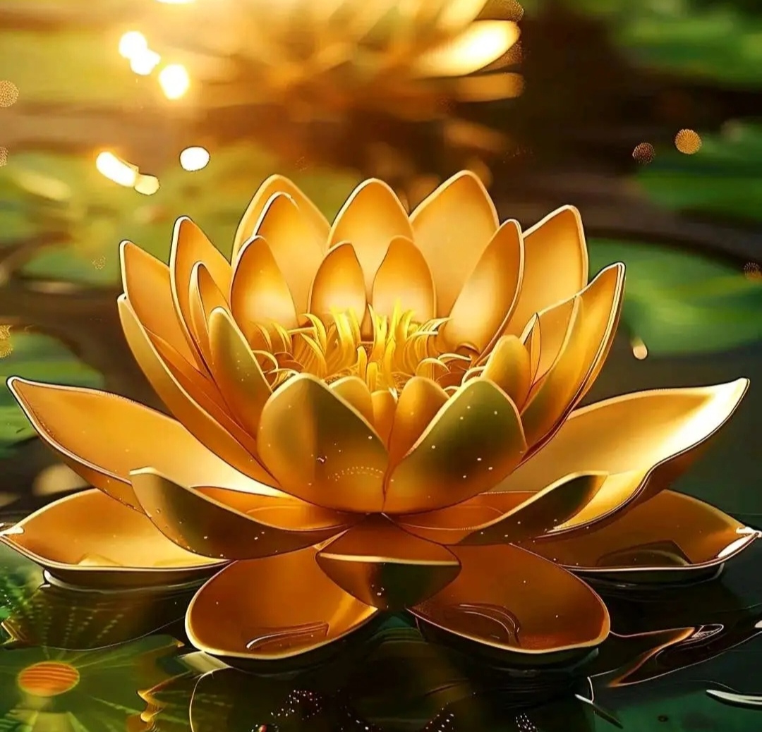 荷花倒影清晰见,佛光普照心自省