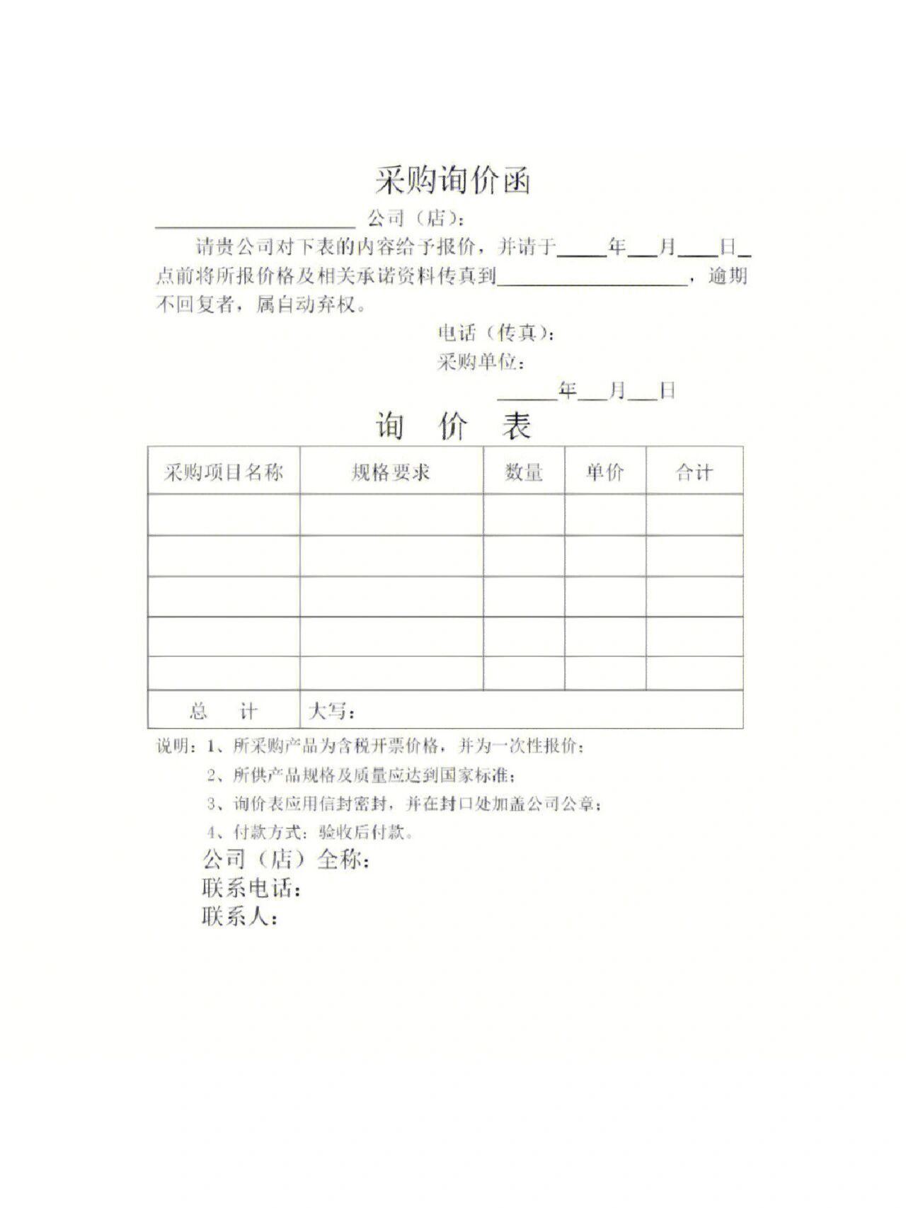 询价单模板现场