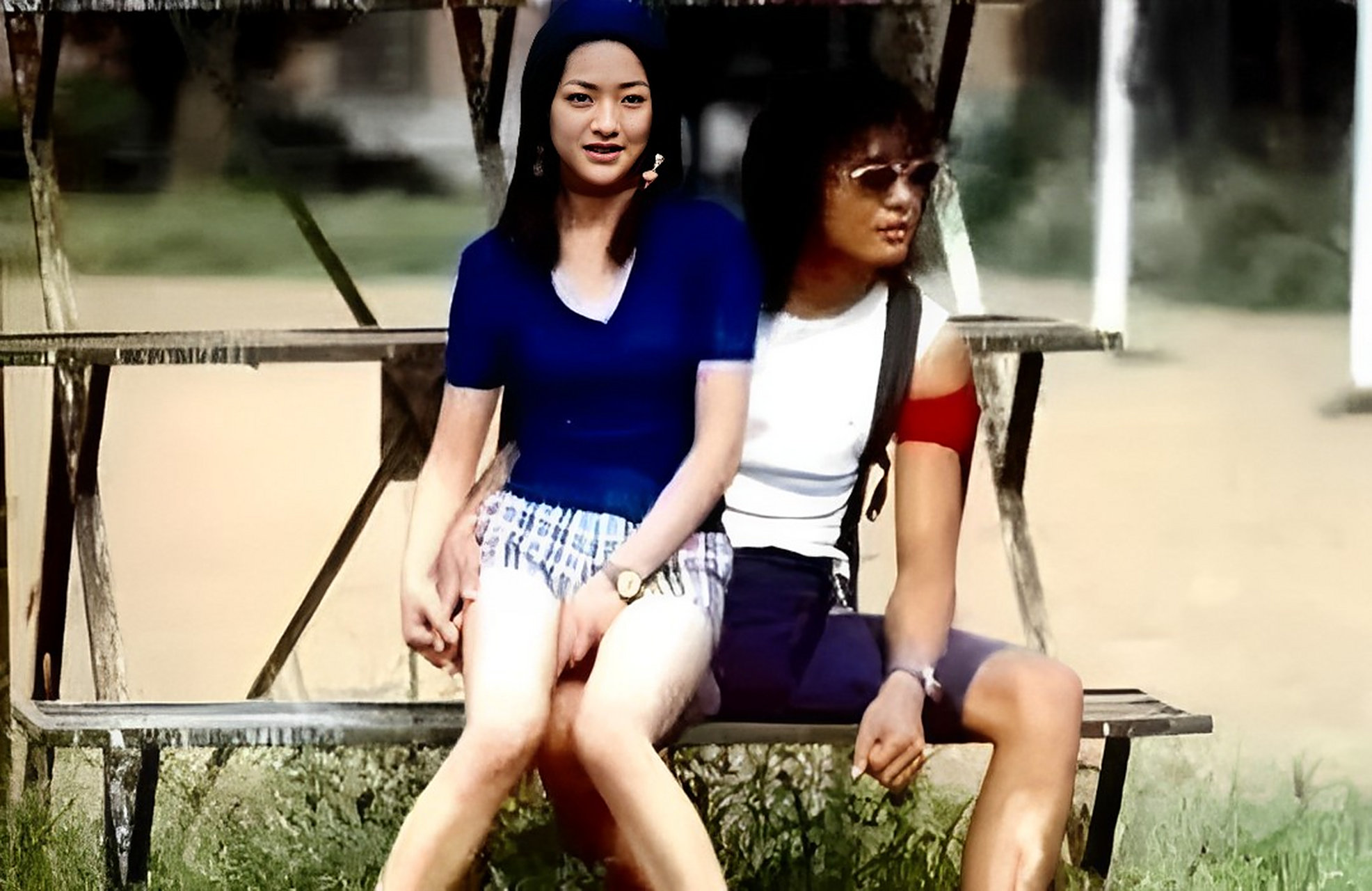 两人因为电影《那时花开》相恋 照片中周迅坐在朴树大腿上,应该已经