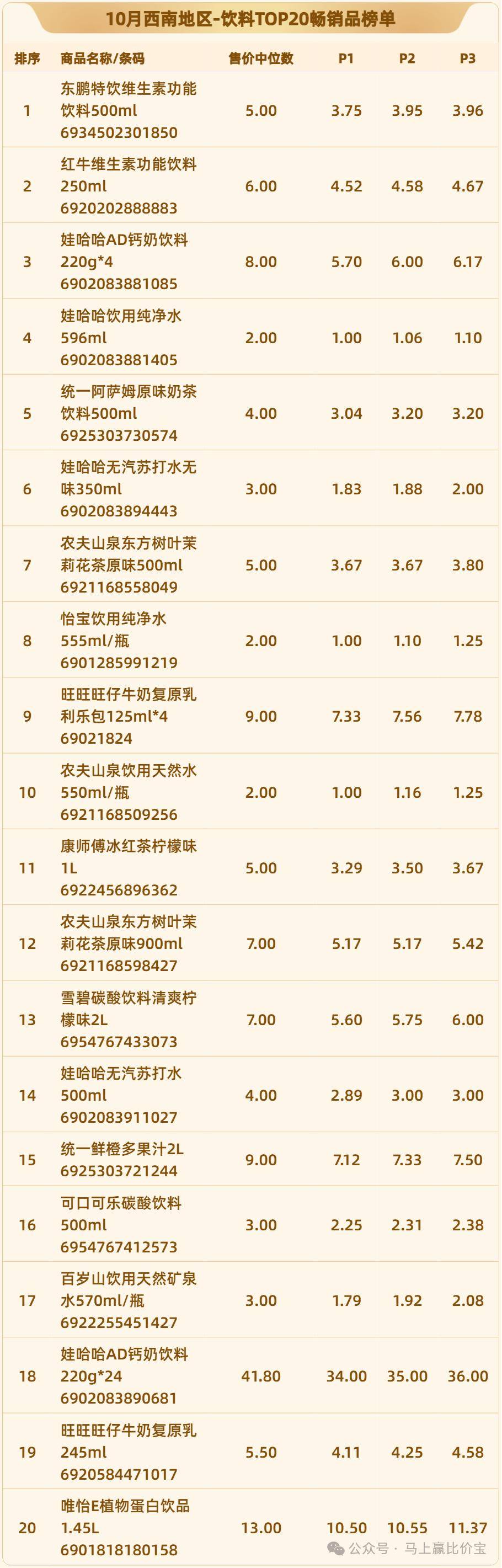 季度榜单2023年第三季度能量饮料畅销榜top50华中