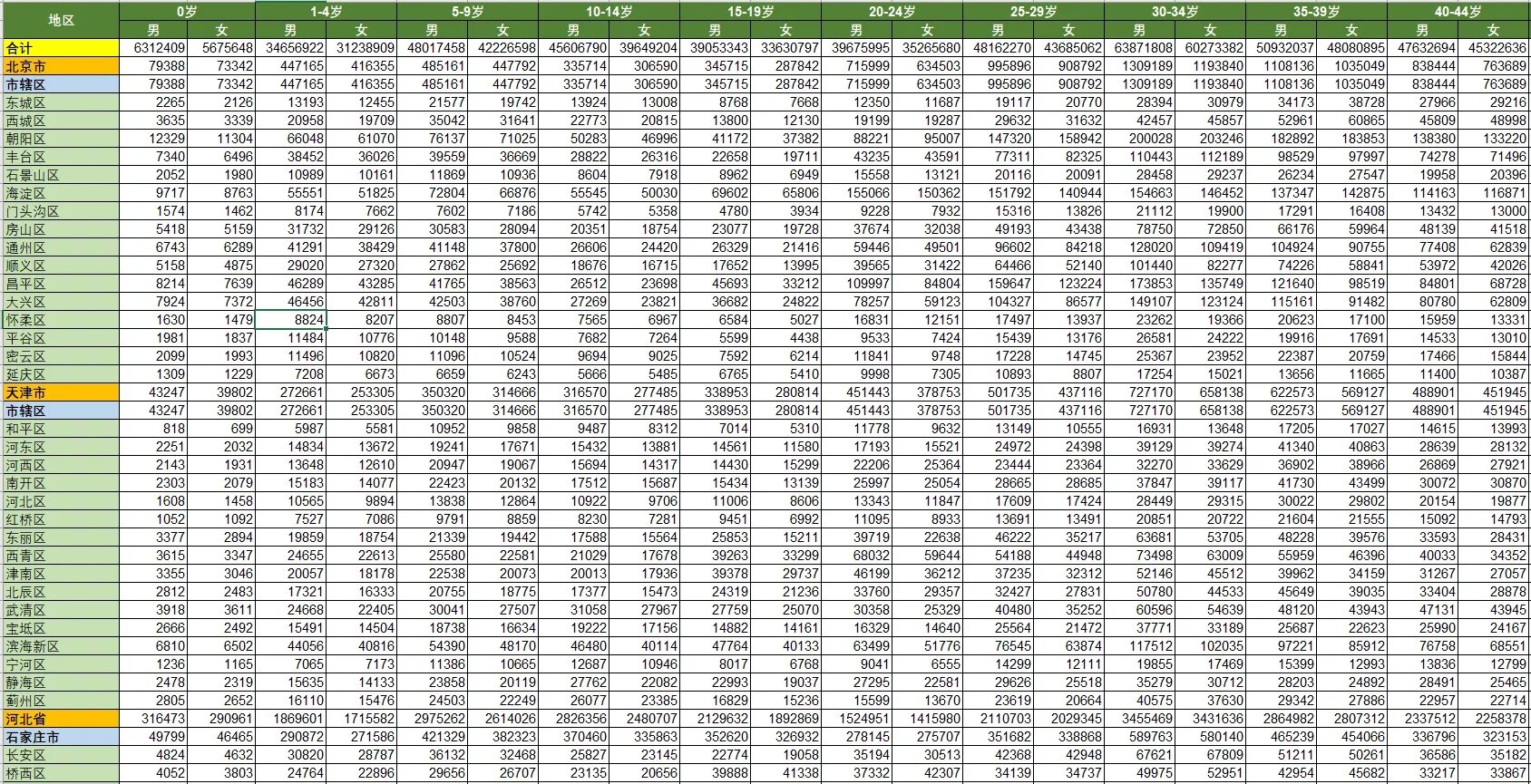 全国各省县区七普人口数据分布图