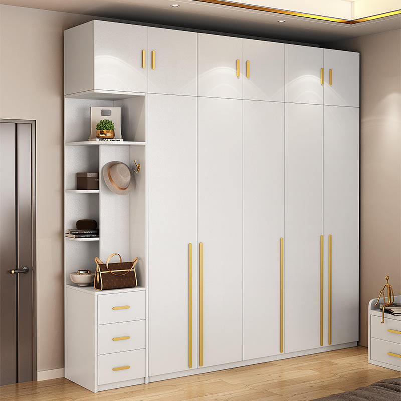 实木多层板衣柜家用卧室出租房轻奢开方式平开玻璃三门组合大衣橱