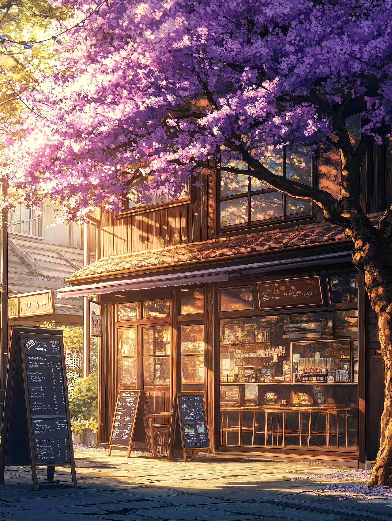 日式漫画风格樱花街道场景插画