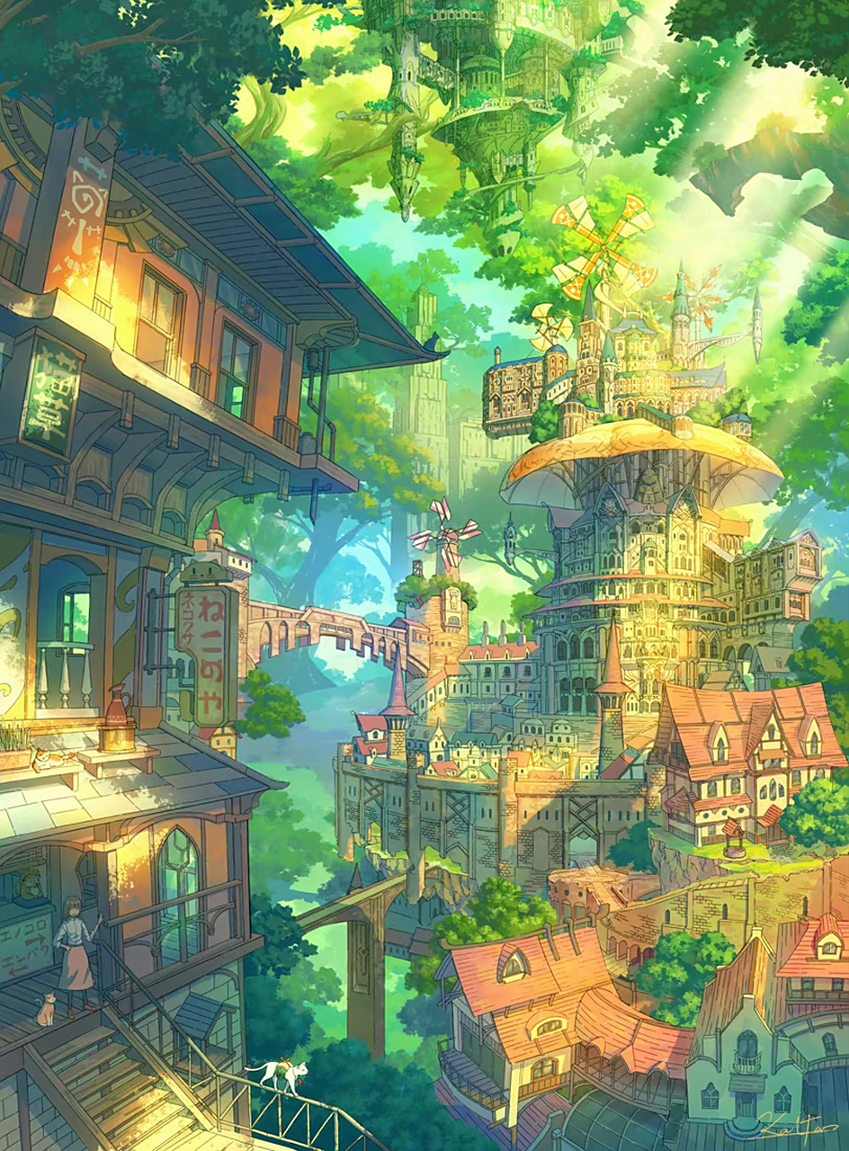奇幻异世界风格卡通场景二次元场景插图插画动画场景设计概念设计图