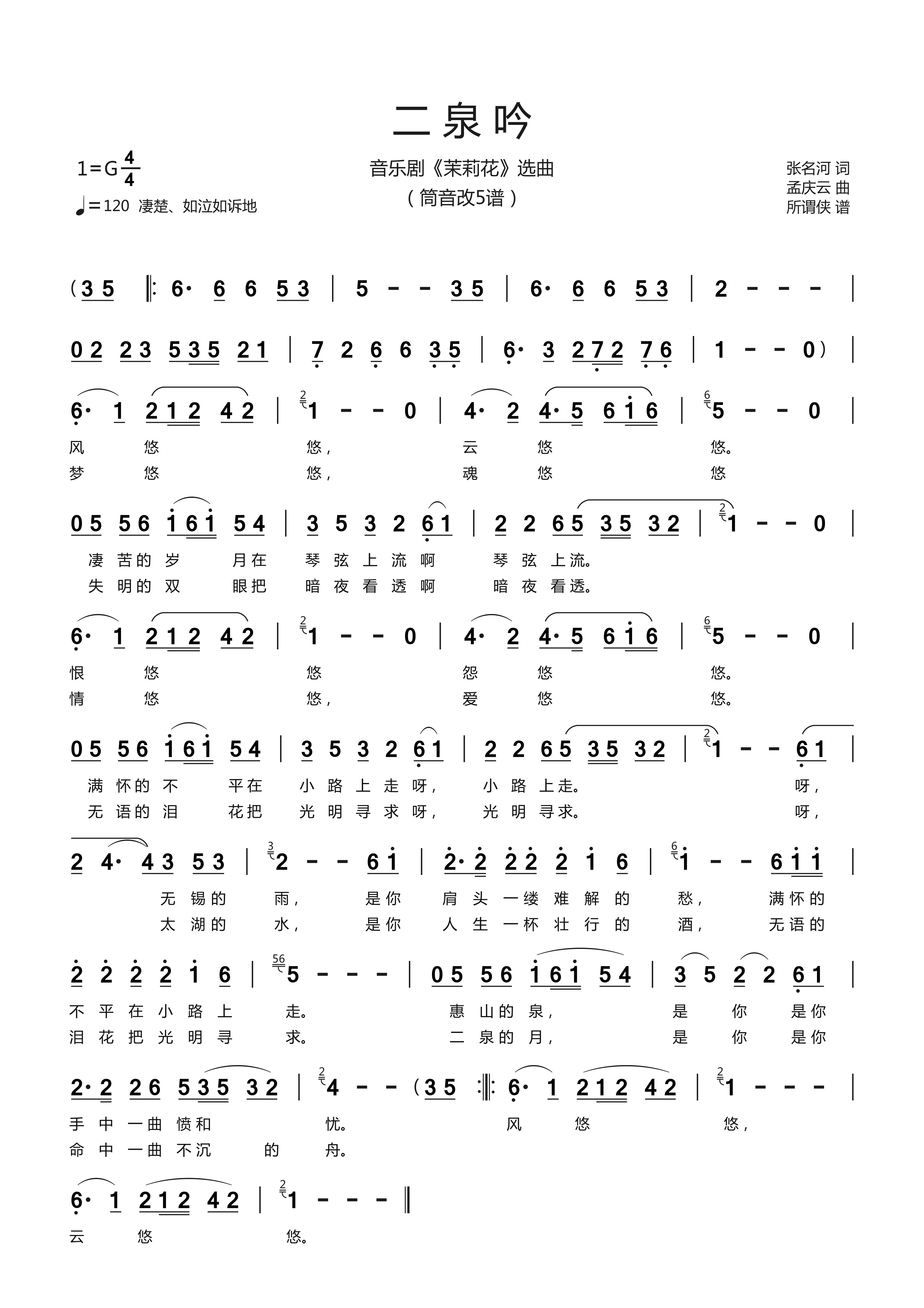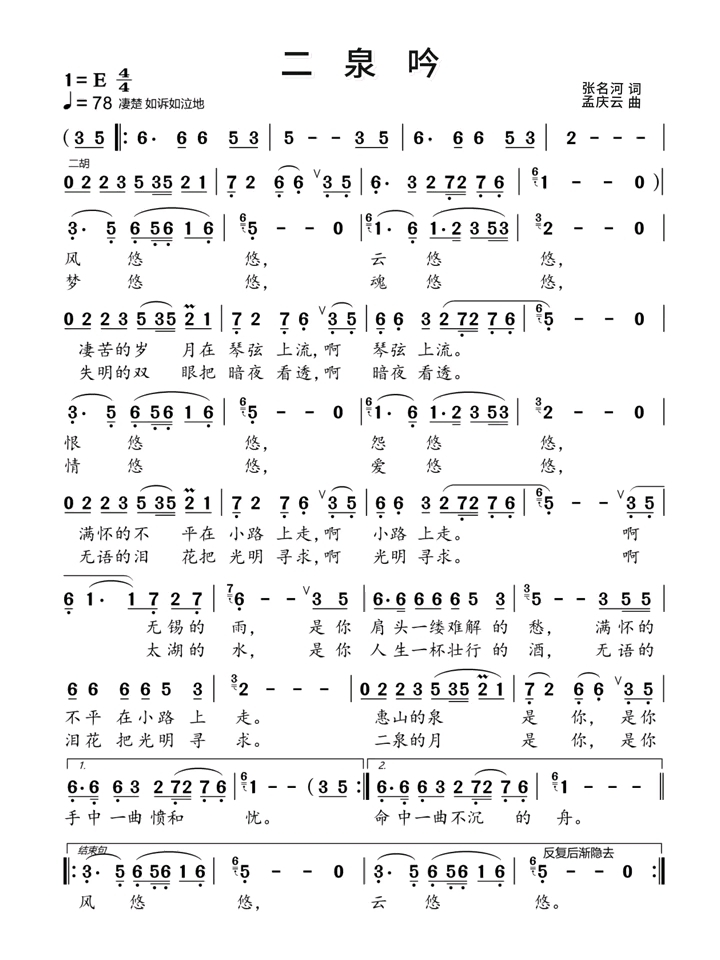 二泉吟,吟二泉,吟不完人世间的悲与欢 《二泉吟》简谱#曲谱分