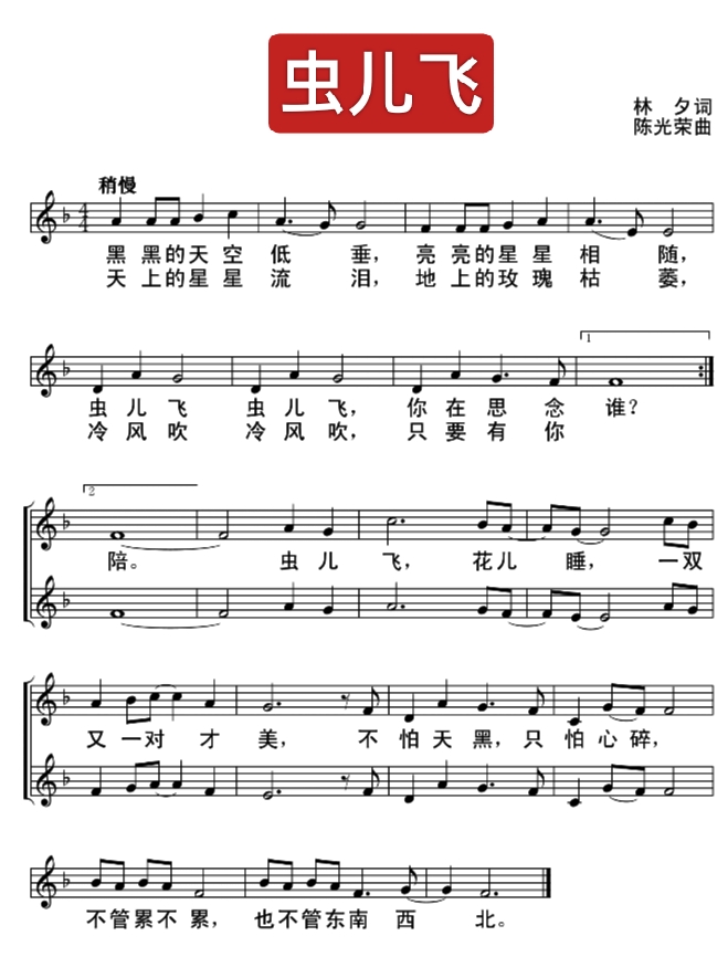 🎹《虫儿飞》五线谱 简谱 指法