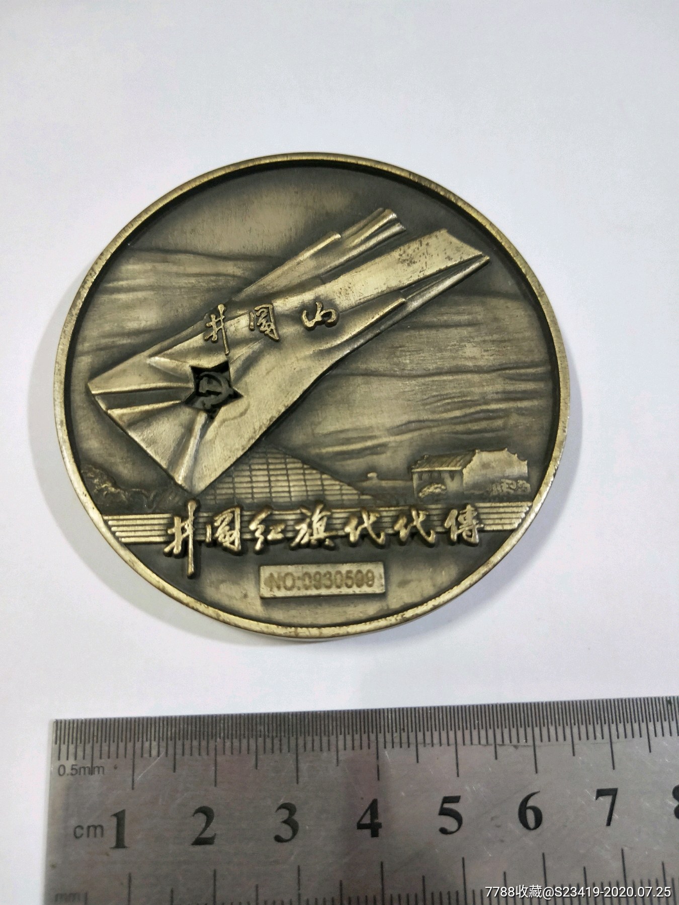 革命圣地井冈山纪念像章,铝合金,直径53mm,背面铭文:"