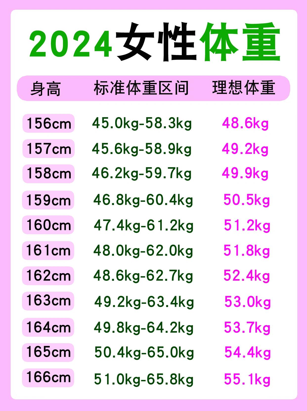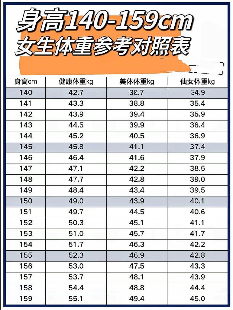 2025年女生标准身高体重对照表,你达标了吗?#身高体重对照