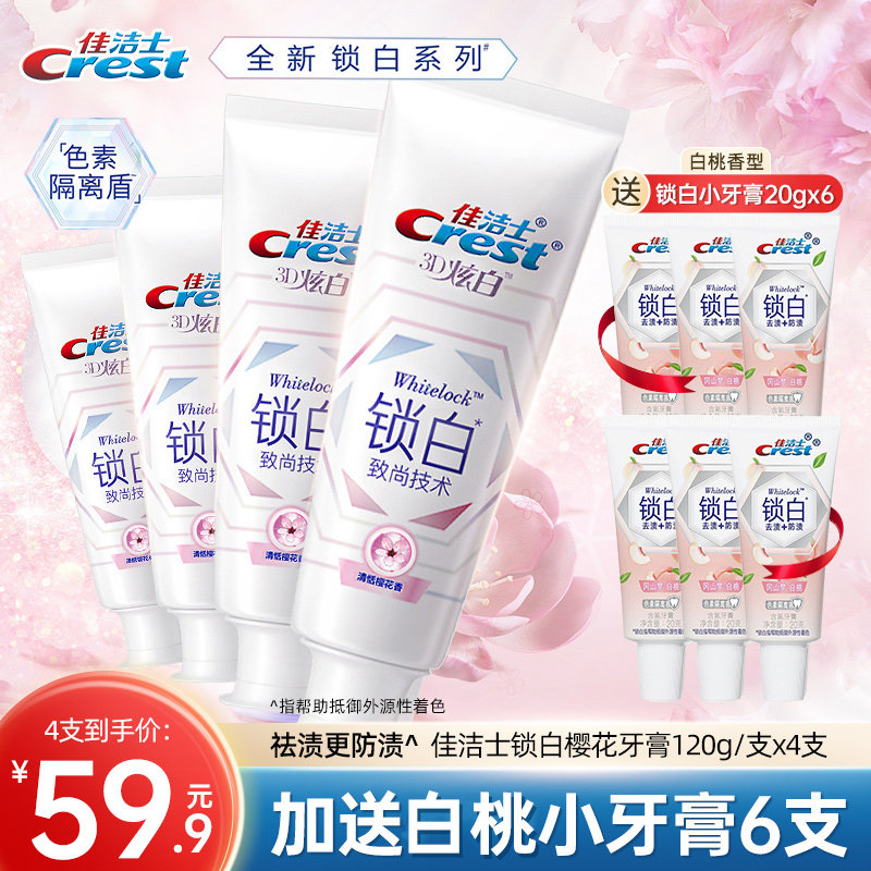 佳洁士锁白樱花牙膏120g4支亮白清洁牙齿清新女男士专用清新口气