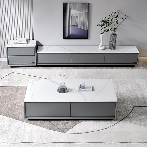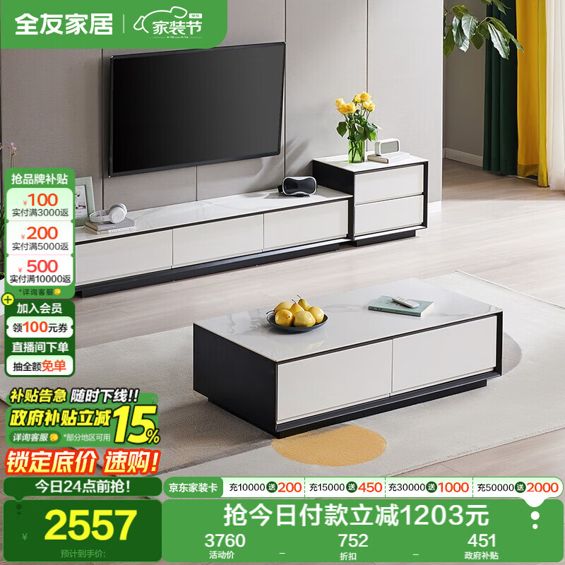 全友家居2025新款意式客厅家用小户型落地岩板茶几电视机柜组合