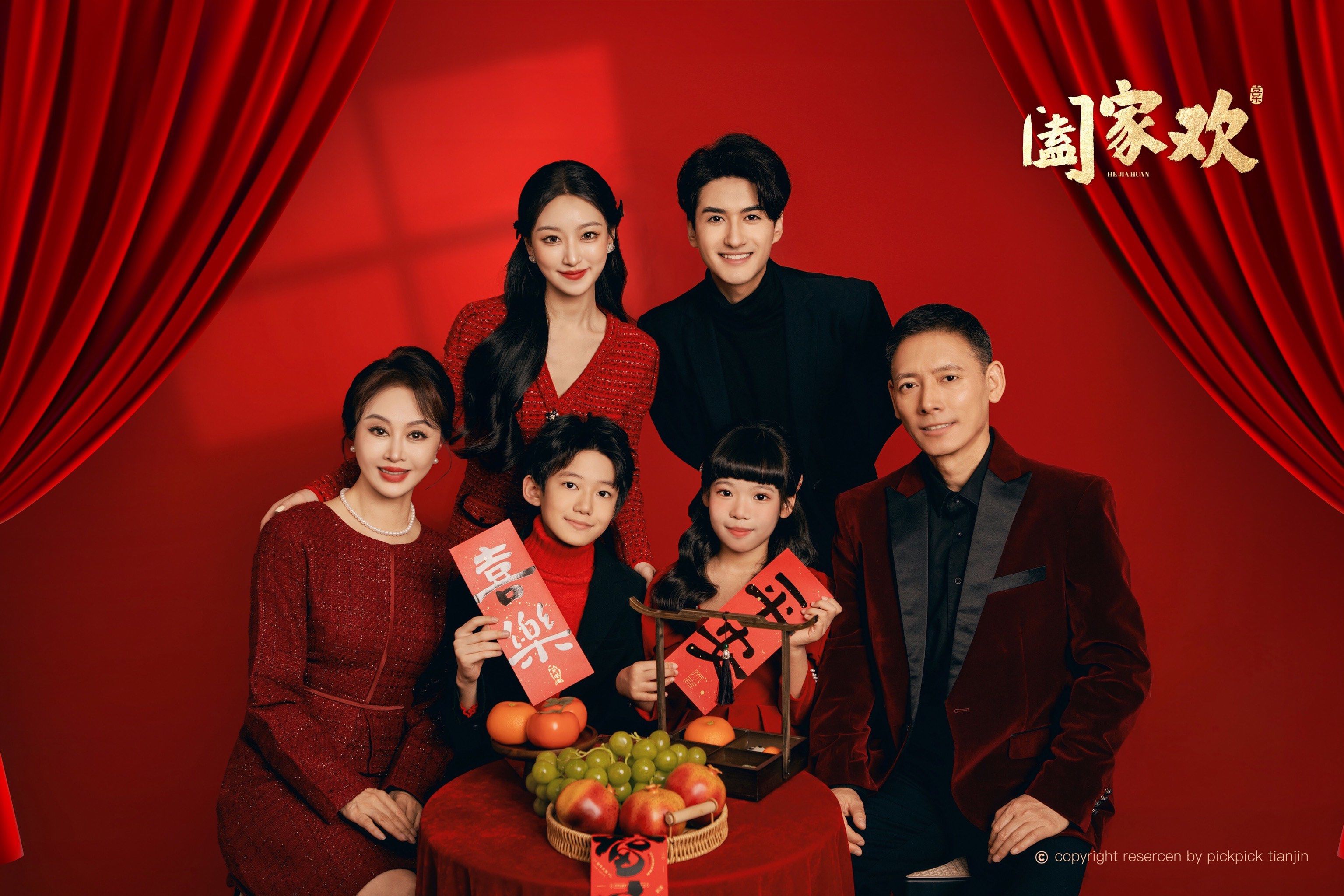 全家福摄影 新中式全家福 红底全家福#三人全家福