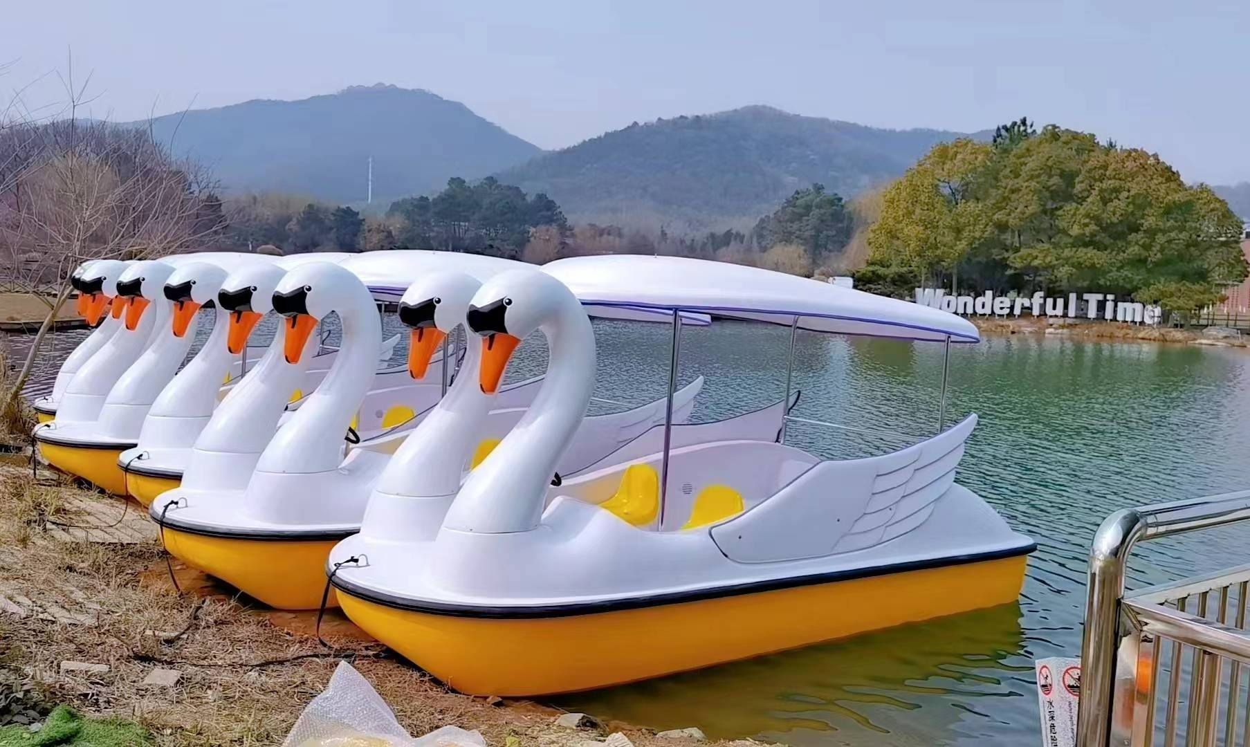 小天鹅聚乙烯电动游乐船,它采用高品质的聚乙烯材料,环保安全
