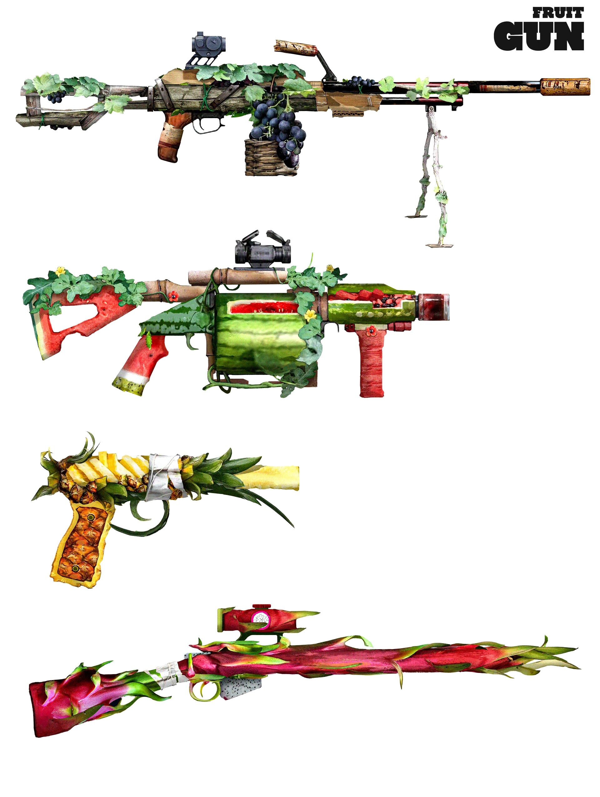 画师mukhlis nur绘制的一组奇幻兵器插画作品,结合各种自然元素创作出