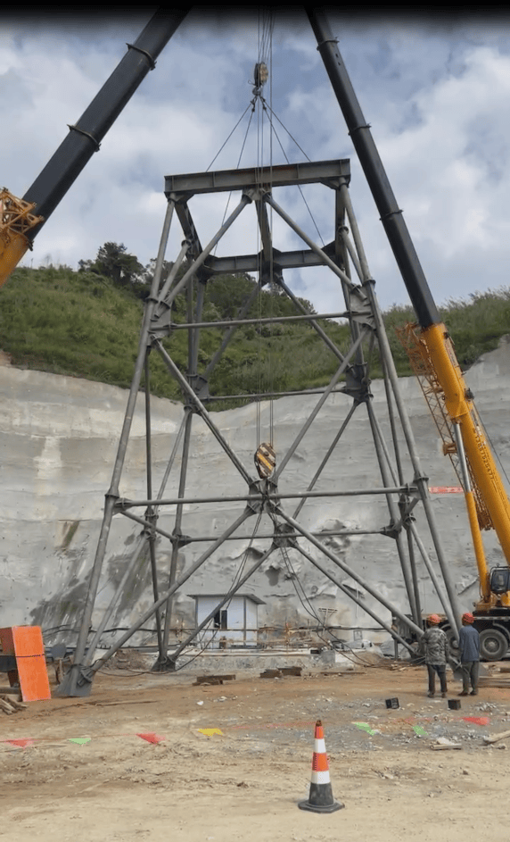工程动态|泰国卡利钾盐矿项目部成功起立风井凿井井架