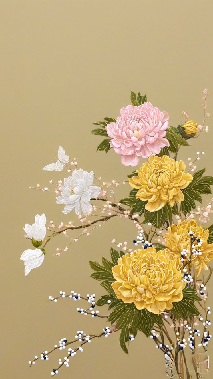 古风刺绣装饰金线花卉梅花元素
