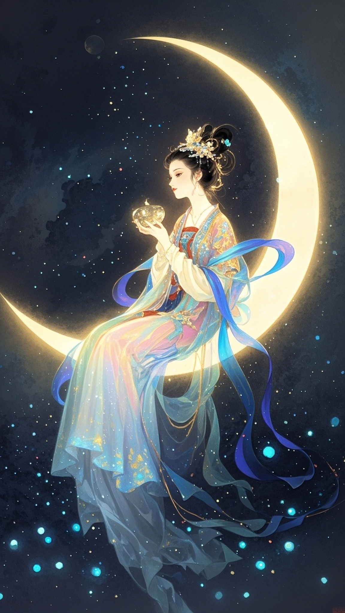 另一种嫦娥奔月.#ai绘画 #古装仙女插画图集 #仙气十足