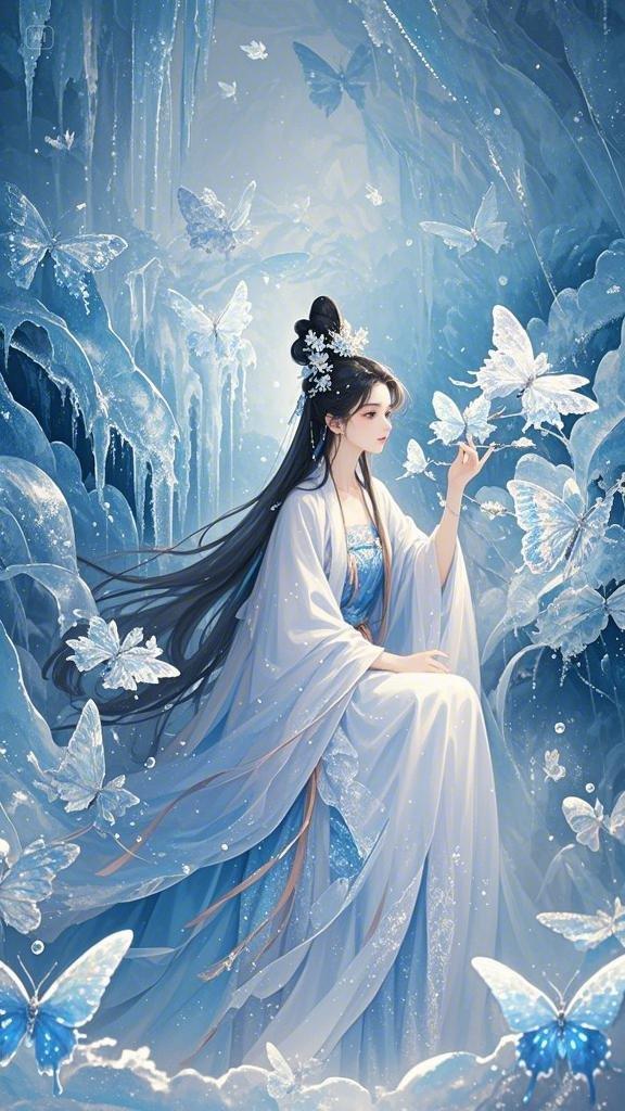 雪中的仙女,蓝白色的精灵,冬日的精灵,梦幻般的冰雪世界,仿佛能感受到