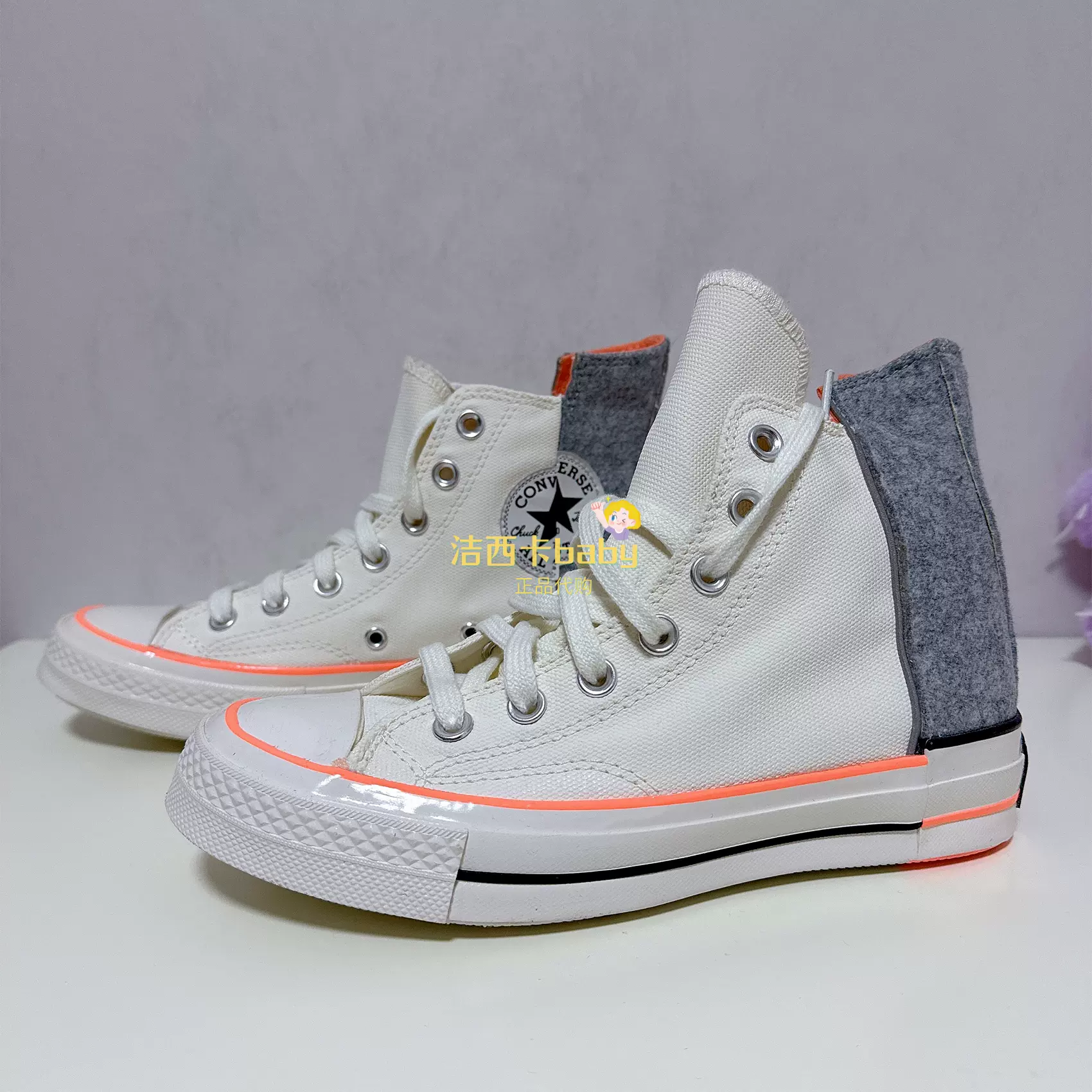 匡威男女鞋1970s错位logo毛呢拼接高帮休闲帆布鞋569434c 569435c