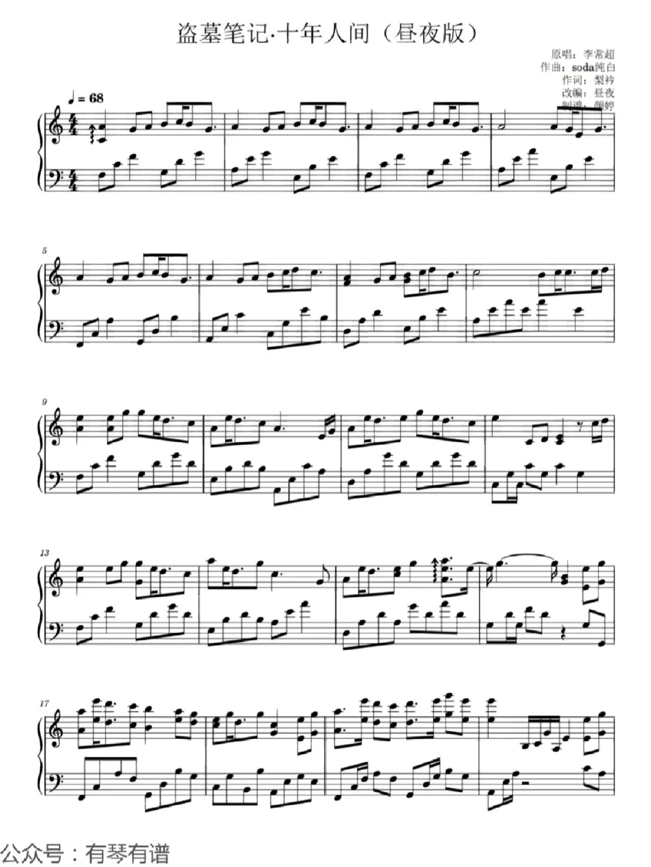 盗墓笔记·十年人间钢琴谱简易版