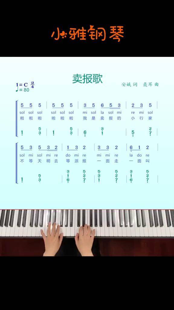 零基础学钢琴《卖报歌》,简易钢琴双手弹奏,简谱教学