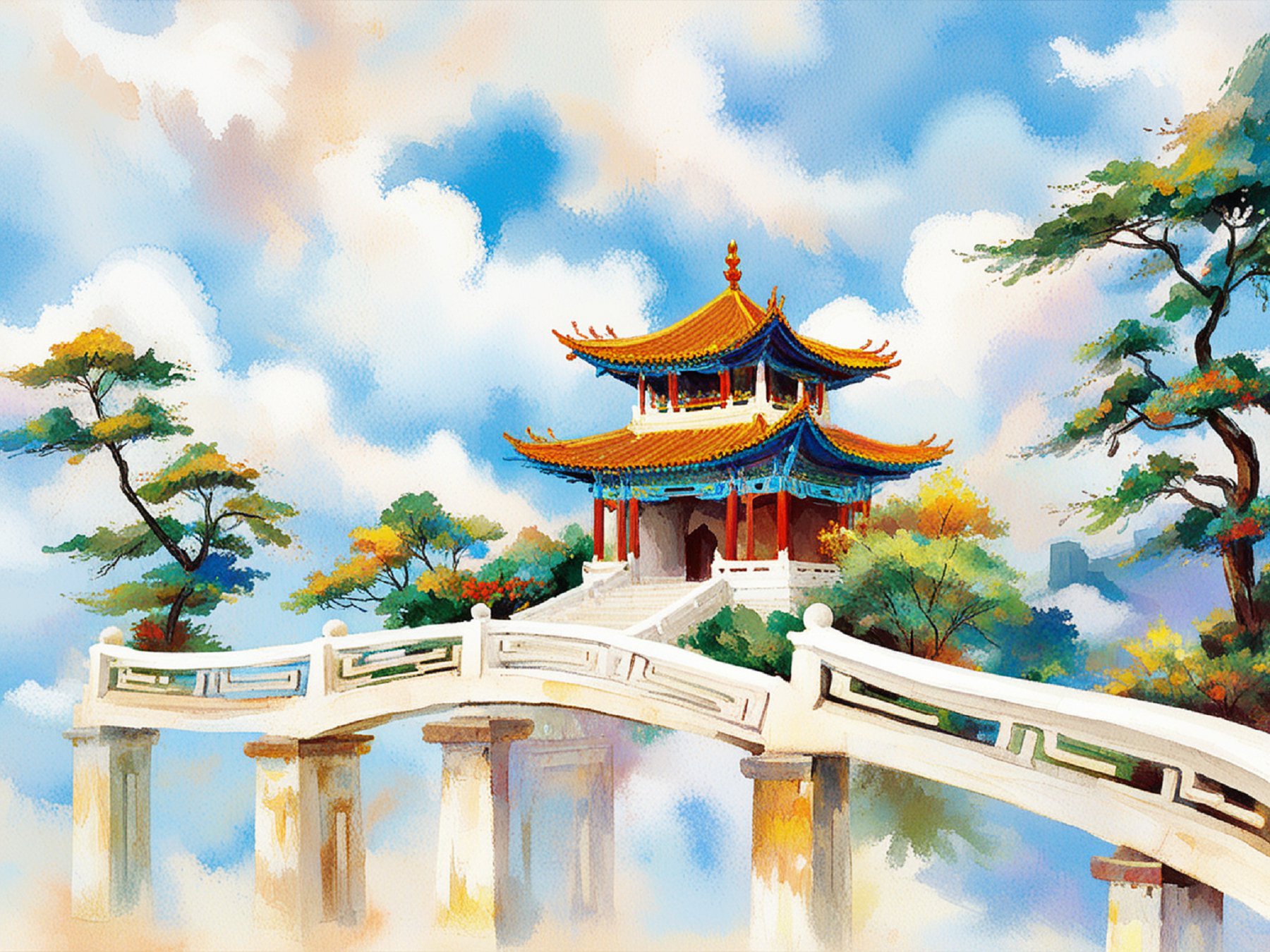国潮建筑插画100天挑战:颐和园一角