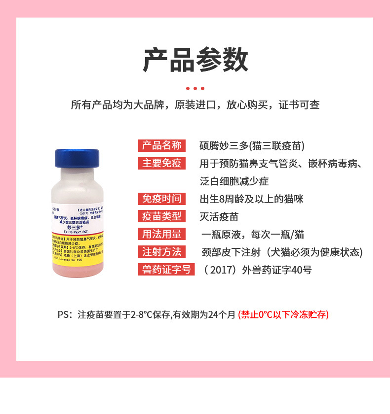 辉瑞妙三多卫佳五卫佳捌瑞贝康狂犬猫疫苗狗疫苗猫三联猫狗疫苗本