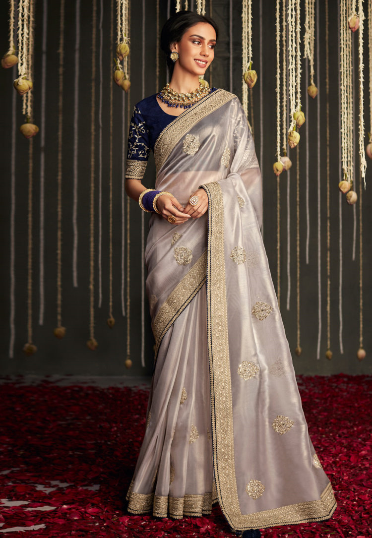 宝莱正品印度民族风纱丽灰色提花花莎聚会礼服民族服装