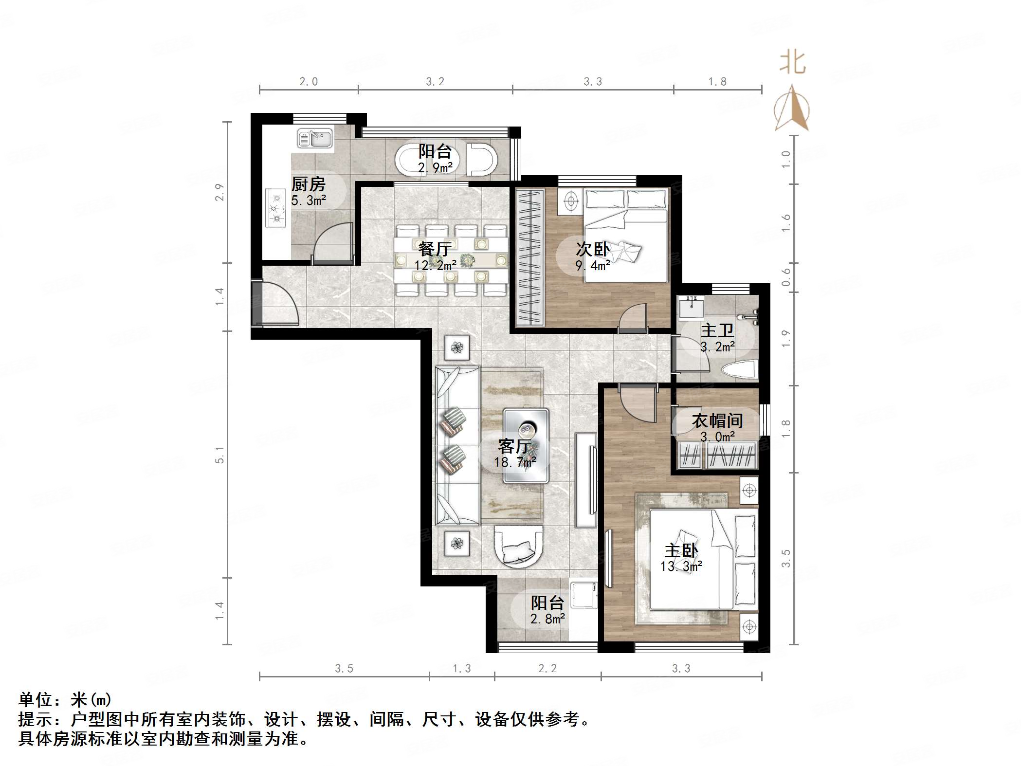 鲁能领秀城中央公园(17区18区)3室2厅2卫144㎡南北335万