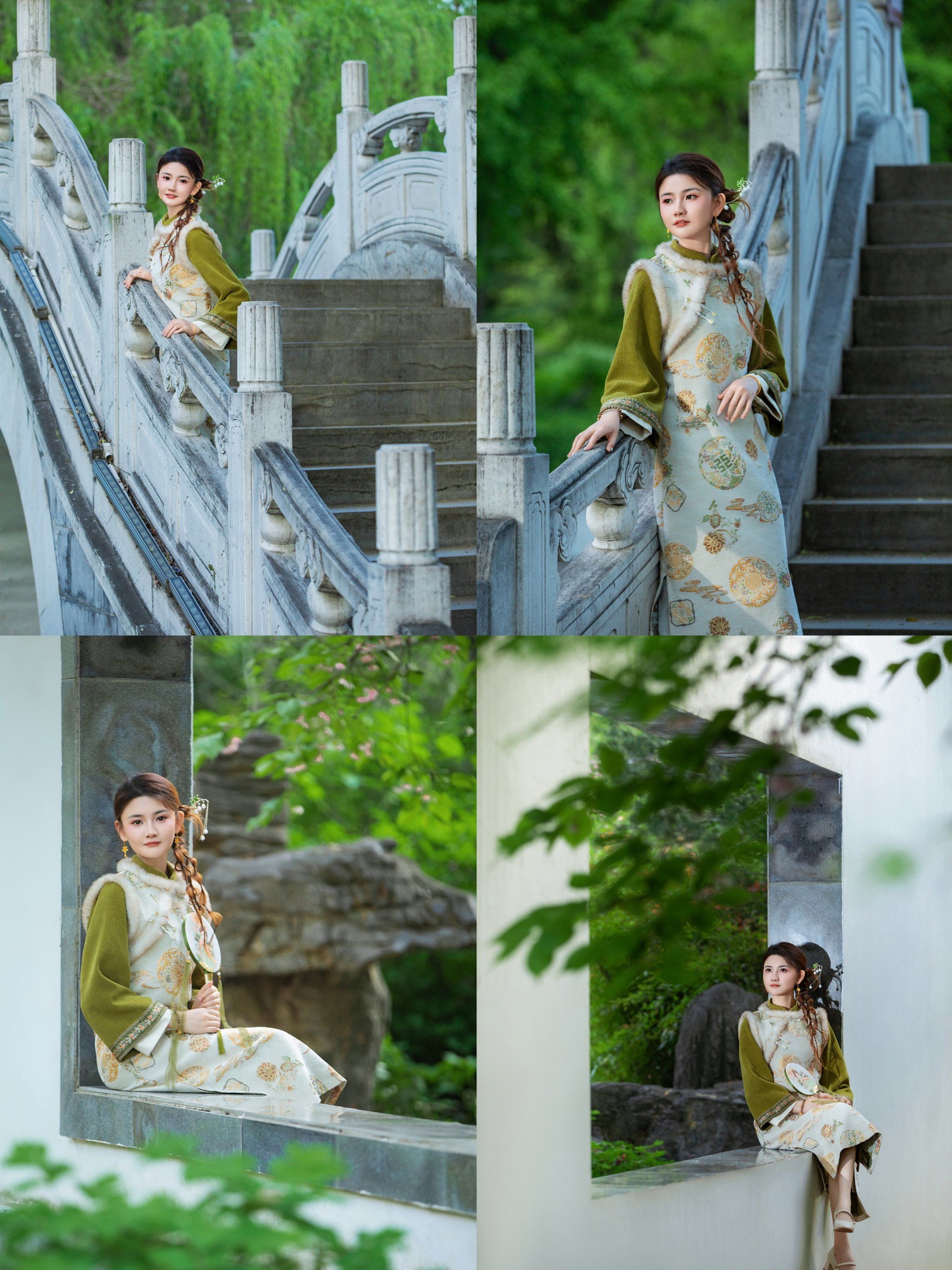 最近,他在北京天坛风景区以典雅的古建筑为背景,拍摄的一组美图,模特