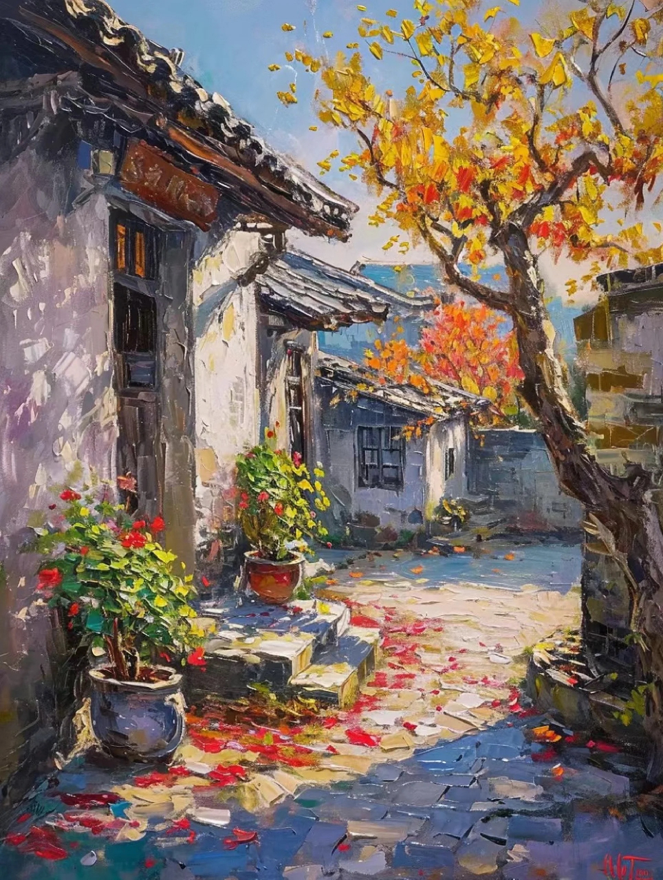 油画《山村》作者清石#一花一木一世界一叶一树一菩提 #回家的