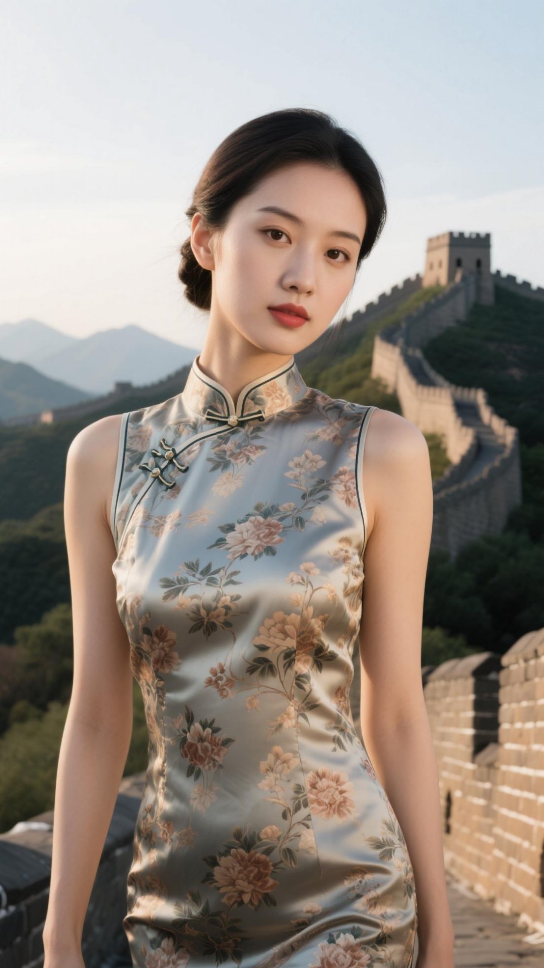 绮梦旗袍情,古韵月露凝,丝绦束花绽.轻纱掩娇颜,曼妙身姿显
