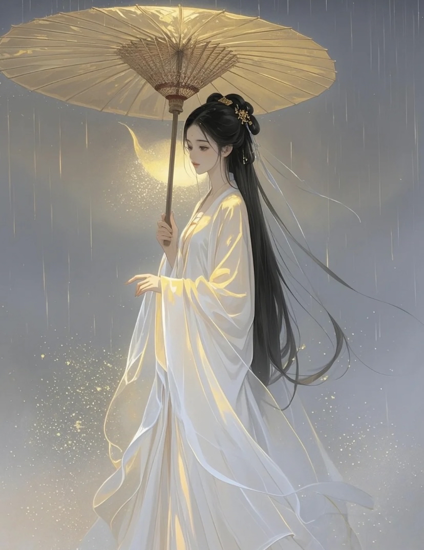 沉思古风唯美沉思意境古风伤感雨后弯月古风图片细雨中葬花古风图片