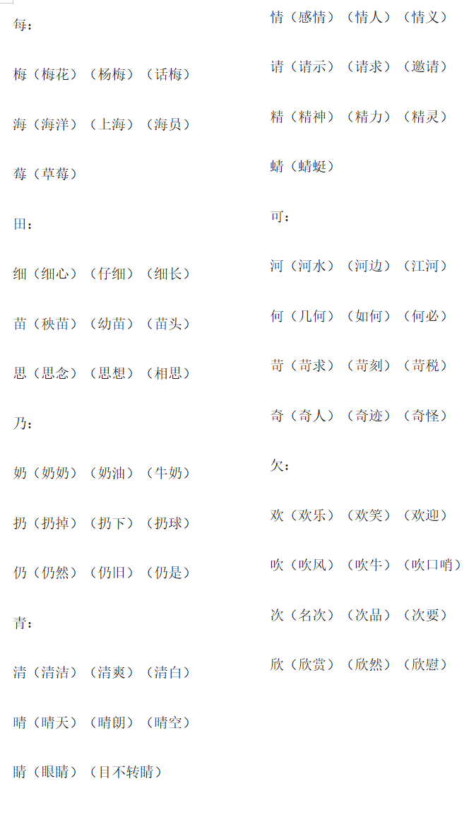 三升四年级上册语文生字组词汇总,可打印预习