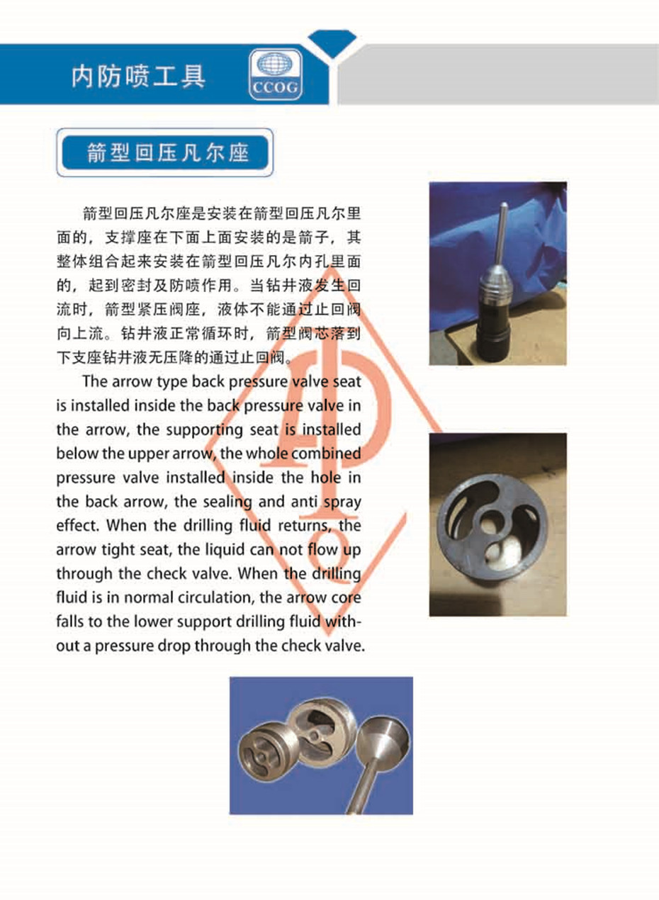 回压凡尔:注水泥 过程中防止水泥浆 倒流,保证水泥浆 上返高度.