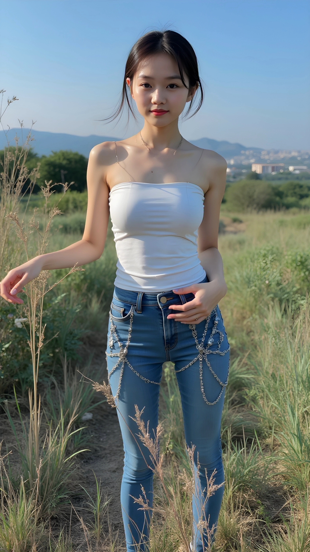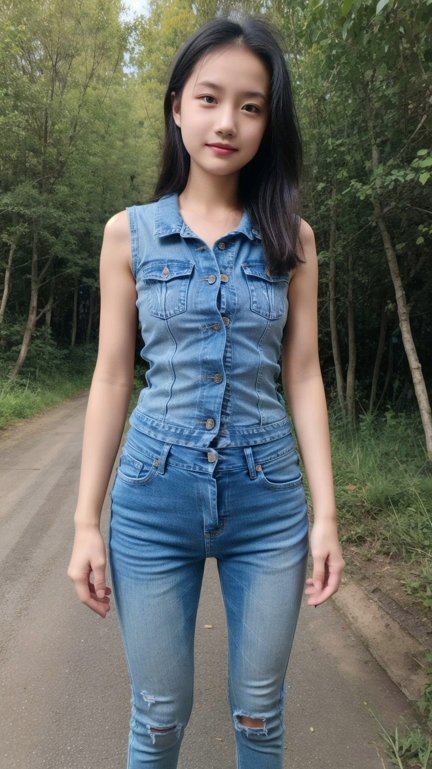 拍摄于山东省潍坊市郊外#紧身牛仔裤 #时尚街拍美女 #美出高