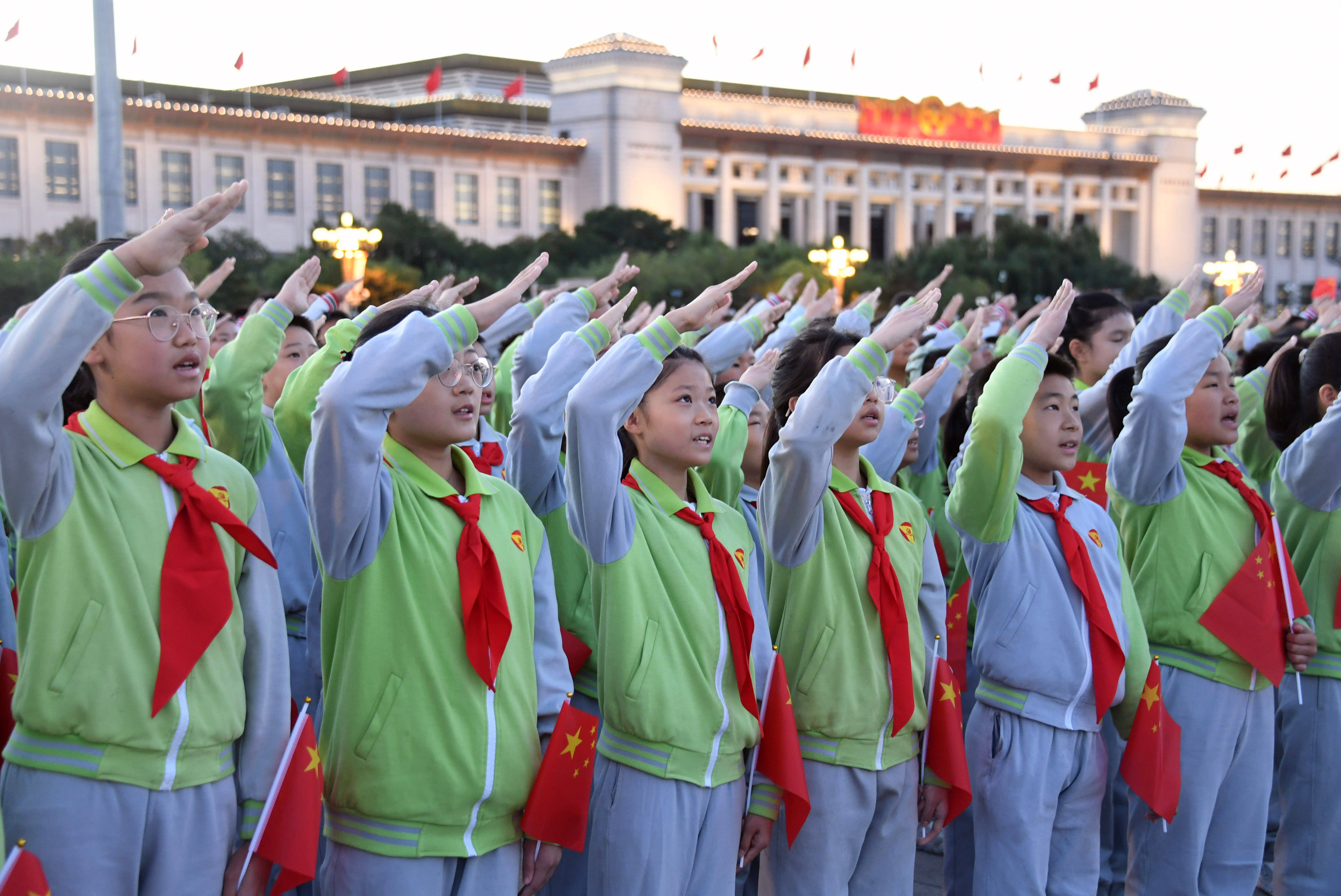 组图丨眼神清澈而坚定,"红领巾"们向祖国敬礼!